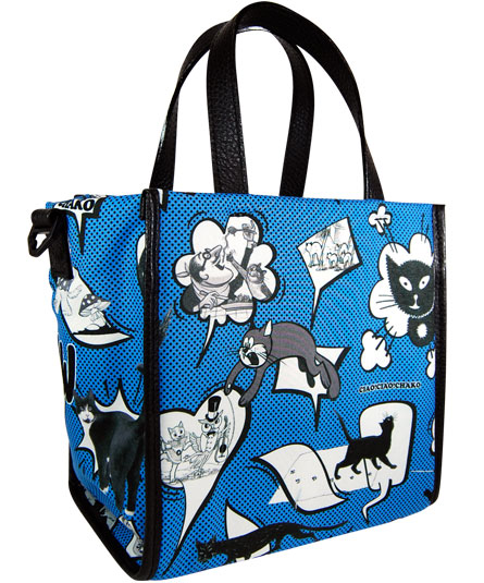 本体は、シルクタッチの肌触りの良い生地にモノトーンのマンガ風の猫のイラストがユニークで可愛いプリント。