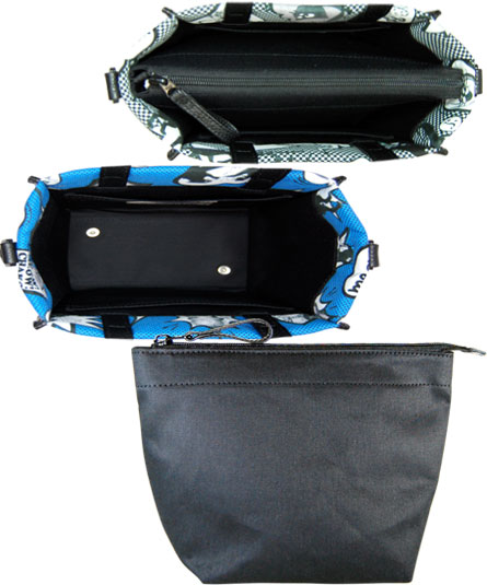 内装は綿素材で作られた天ファスナー付きのポーチが付いています。(当社の長財布が横に収納可)取り外し可能。