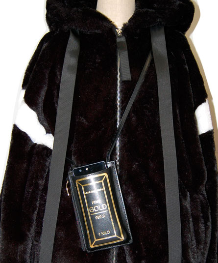 金塊の箔押しがポイントの「マイクロバッグ」は、今人気の携帯ポシェット。
