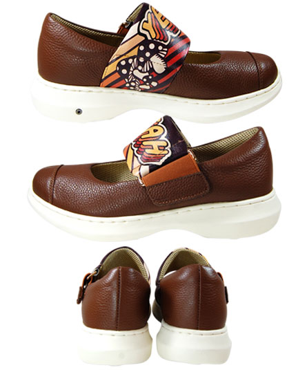 ストラップ部分にゴムが付いていますので、金具を外さずに脱ぎ履きが出来ます。