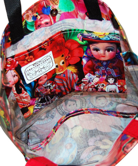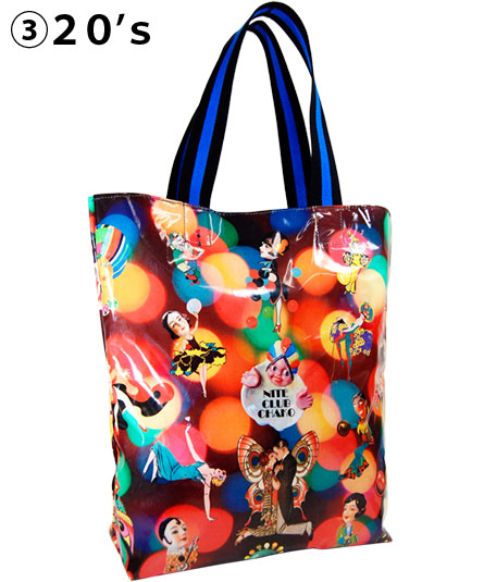 歴代のシーズンテーマに合わせたプリント生地を使ったカラフルなショッピングトート。