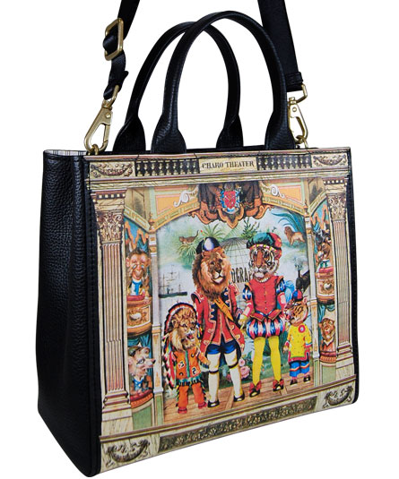 革に特殊印刷された、今シーズンテーマの「Theater」を象徴的に表現したプリントが全面に広がります。