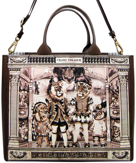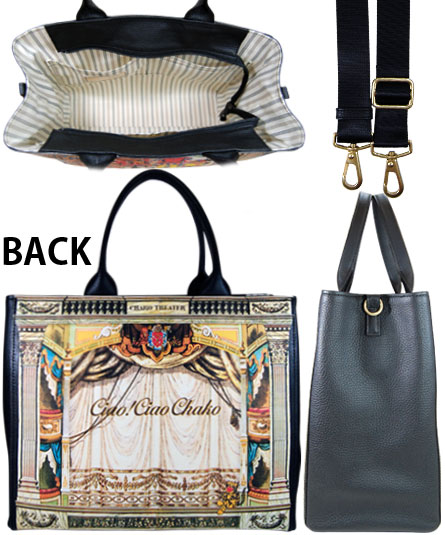 革に特殊印刷された、今シーズンテーマの「Theater」を象徴的に表現したプリントが全面に広がります。