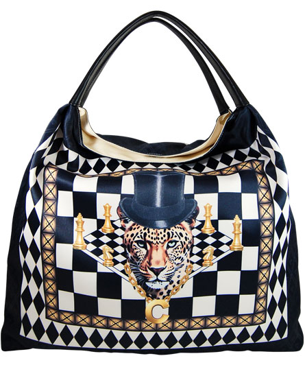 白黒のアーガイルチェックにゴールドを効かせたパターンに、チェス盤と豹のチャンピオンのイラストがクールな印象のデザイン。