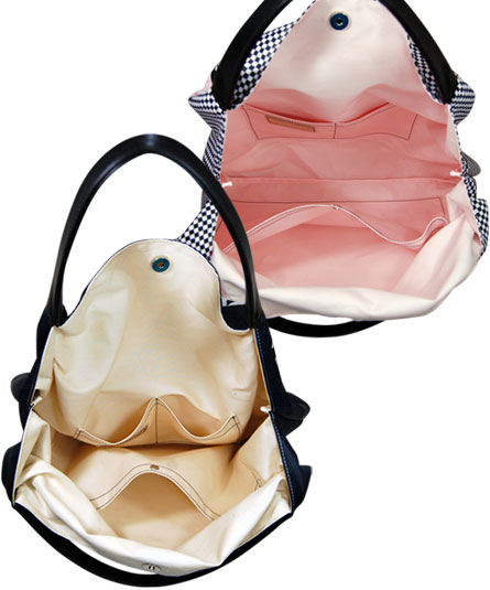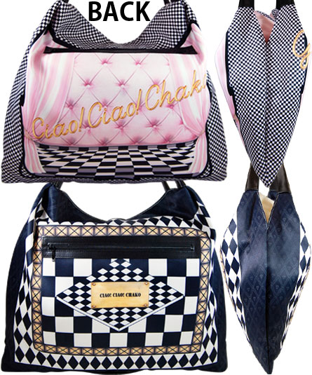 本体は、シルクのスカーフの様な質感の生地に手紐等には黒の牛革を組み合わせています。