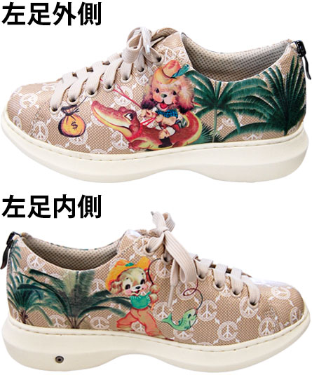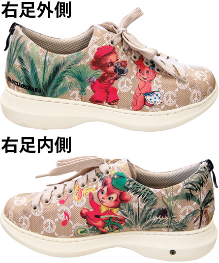 左右足の内外でプリント柄が異なる遊び心のあるユニークなデザイン。