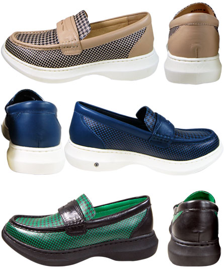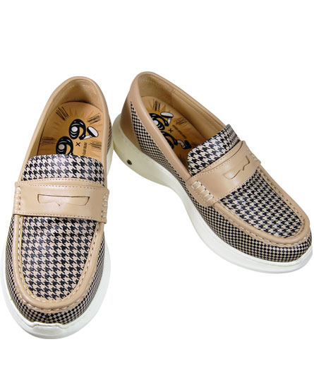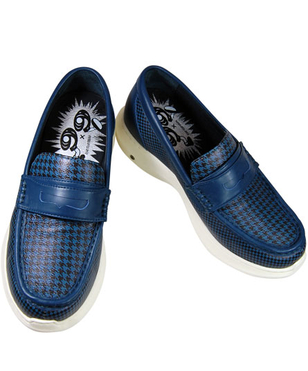 アッパー部分には千鳥格子のプリント革を使い、サイド部分には市松模様のプリント革を組み合わせた二種類の模様の違いが洒落たデザインです。