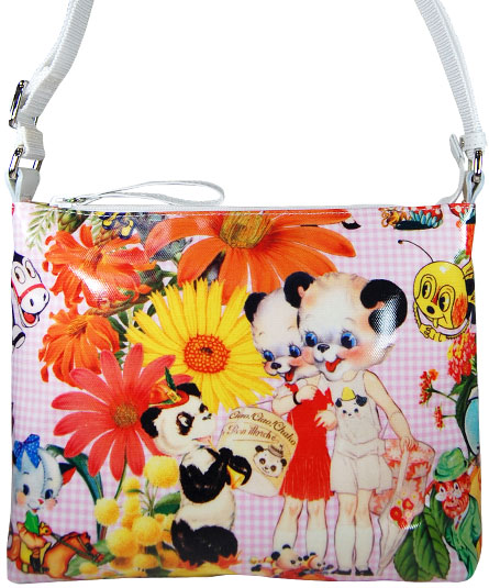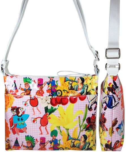 今シーズンのプリント柄は、ピンクと白の細かいギンガムチェックをベースに、昭和の時代の子供達の甘い思い出の世界と花々を散りばめたノスタルジックに表現したコラージュプリントです。