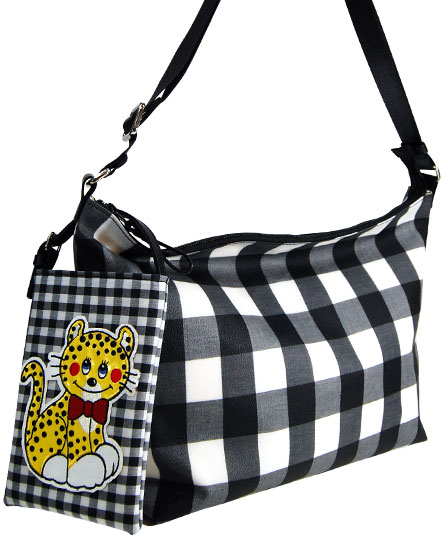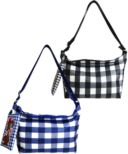 王道のギンガムチャック柄をバッグには、大きなチェックをポーチには、小さなチェックをコンビネーションさせたところがチャームポイントです。