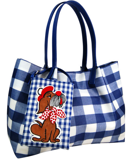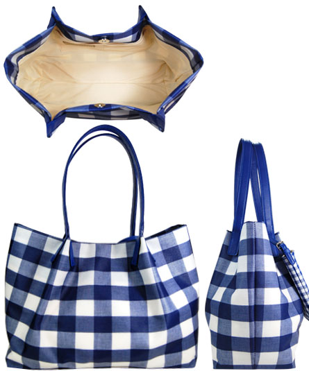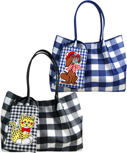 王道のギンガムチャック柄をバッグには、大きなチェックをポーチには、小さなチェックをコンビネーションさせたところがチャームポイントです。