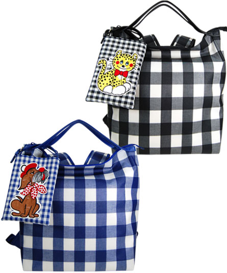 王道のギンガムチャック柄をバッグには、大きなチェックをポーチには、小さなチェックをコンビネーションさせたところがチャームポイントです。