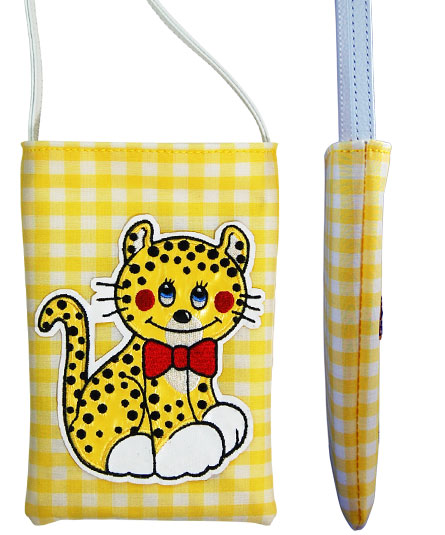 ④イエロー(豹の刺繍入り携帯ポーチ)