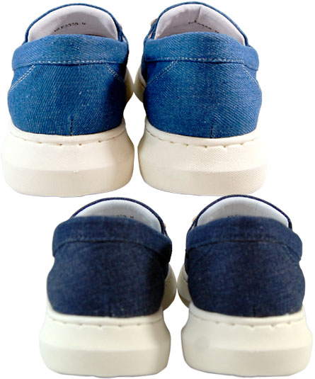 革で見られるモカシンタイプの靴をデニム生地で表現したスニーカー。