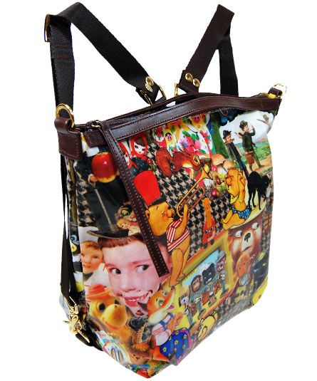 3WAY、手紐を付け替える事で、手提げタイプとして、また、ショルダーからリュックになります。