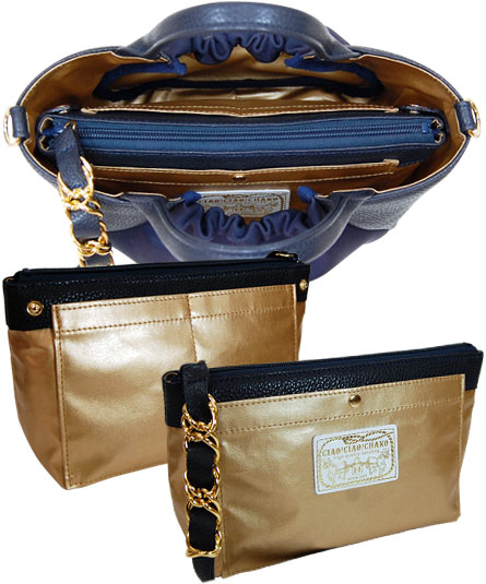 ショルダー手紐が、取り外しが出来て手提げとして使用できます。内装ポーチは取り外しが出来ます。