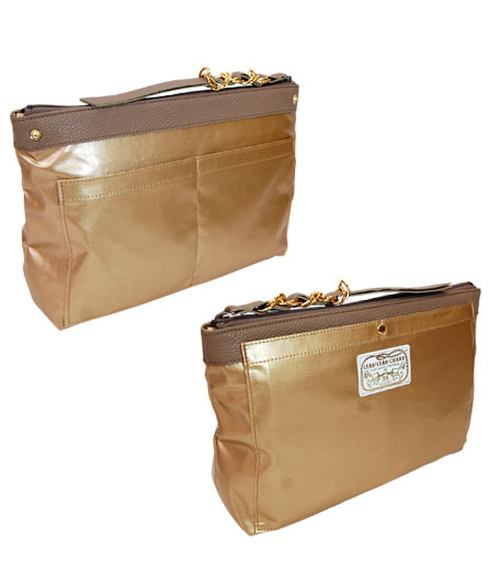 ショルダー手紐が、取り外しが出来て手提げとして使用できます。内装ポーチは取り外しが出来ます。