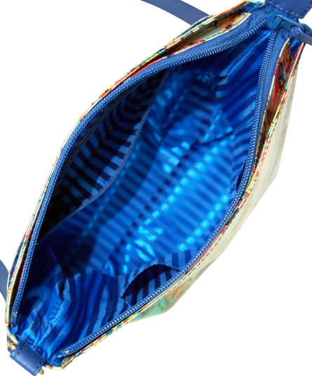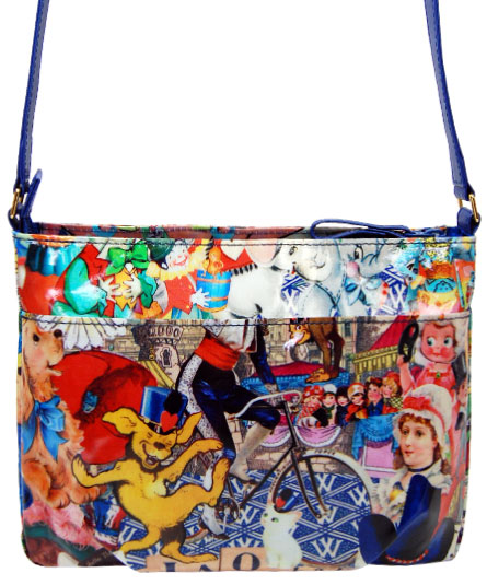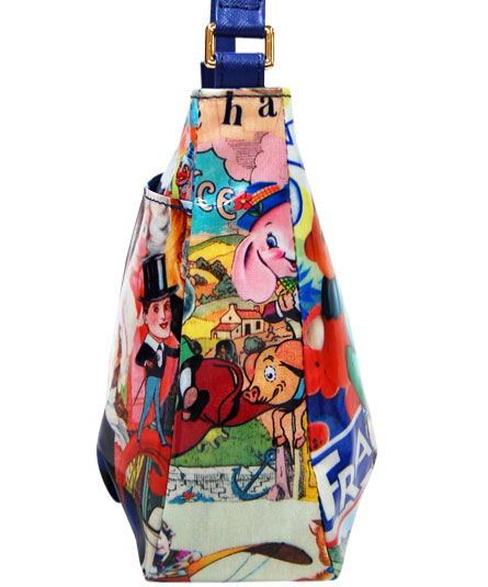 シーズンテーマに合わせたオリジナルプリント生地のバッグ。赤、ブルー、白のカラーが散りばめられたコラージュは、フランスの国旗のトリコロールのイメージ。 そして、手紐のブルーと内装のストライプ生地に使われたブルーとのコントラストが絶妙なコンビネーションです。 プリント生地には、表面にビニールコーティングされていますので、多少の雨にも強いです。軽量で使い易いタイプです。