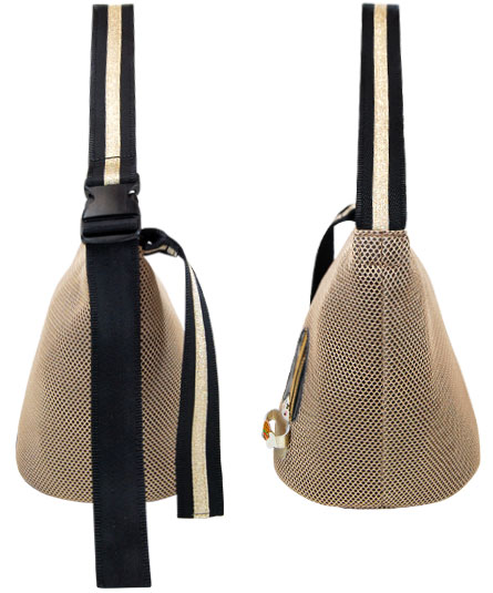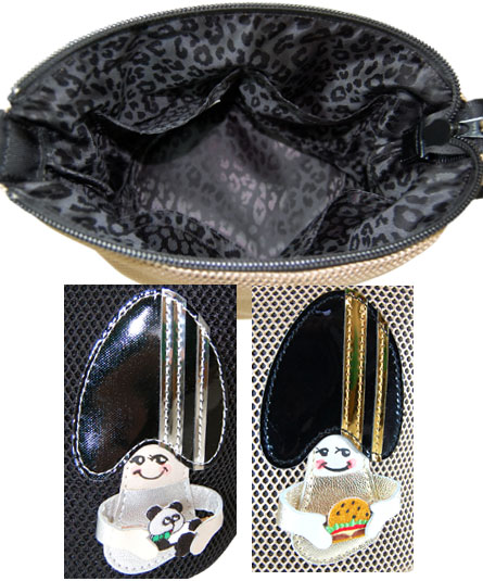 メッシュの本体に、きのこのモチーフがパッチワークされたキャッチ―でスポーティーなイメージのバッグ。 黒のバッグへ付いたきのこが持っているのは、サッカーボール。そして、ベージュのバッグへ付いたきのこが持っているのは、ハンバーガーになります。 そのイメージとしては、フランスのサッカーチームとそのオーディエンスです。きのこの顔部分は、手描きの為、一つ一つ異なりますので御了承下さい。