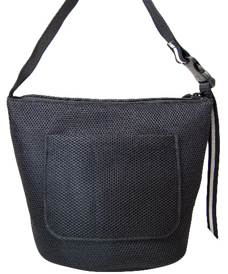 背ポケット付き 天ファスナー付き マチ幅が有りお弁当箱等がスッポリと収まるサイズのショルダーバッグ。