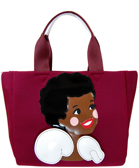 70年代のライン入りのジャージのイメージ。モハメド・アリに憧れるアフロの男の子とブルースリーに憧れ、カンフーをする女の子がパッチワークされたファンキーなスポーティートートバッグ。ヨガや、フィットネス、等のジム通い用としても、楽しめるバッグです。