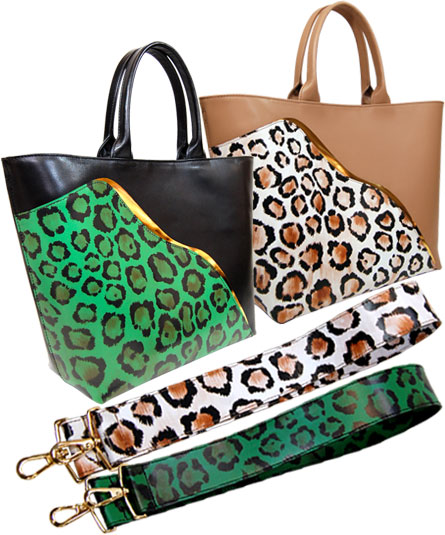 ケニアのサバンナから、イメージした豹のプリントを使ったバッグは、顔(4305)と胴体(4306)尻尾(4307)と三つのパーツを分解させて、一体の豹のフォルムを表現したユニークなデザイン。POPな豹の柄は、イタリア製の豹のフィルムを日本でキップ牛革へプリント加工したオリジナル素材。配色のコントラストがエレガントで大人の雰囲気を醸し出しています。