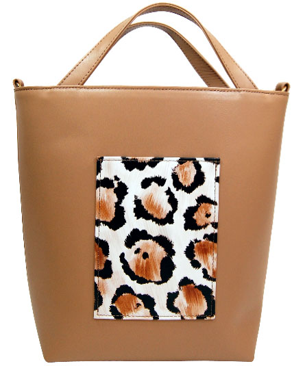 ケニアのサバンナから、イメージした豹のプリントを使ったバッグは、顔(4305)と胴体(4306)尻尾(4307)と三つのパーツを分解させて、一体の豹のフォルムを表現したユニークなデザイン。POPな豹の柄は、イタリア製の豹のフィルムを日本でキップ牛革へプリント加工したオリジナル素材。配色のコントラストがエレガントで大人の雰囲気を醸し出しています。