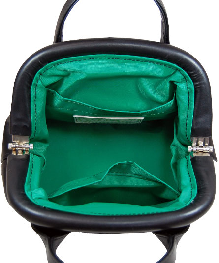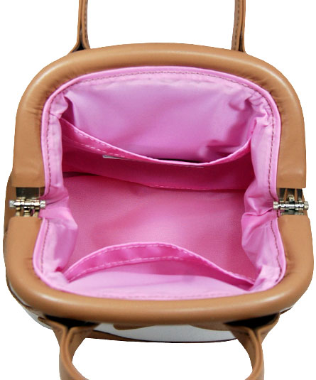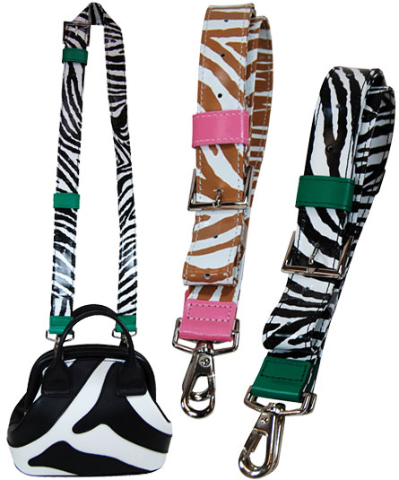 ケニアのサバンナの平原から想起された、ゼブラの縞模様を革でパッチワークしたバッグ。手紐のゼブラプリントとのコンビーネーションが絶妙なバランス。内装のピンクとグリーンのカラーがアクセントポイントとして効いています。短めの斜め掛けすると、トレンディーな雰囲気になります。
