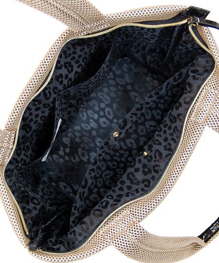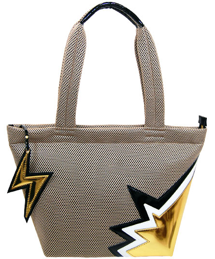 スニーカー等で使われているスポーツ素材のメッシュを使ったシリーズ。本体の右側コーナーの稲光のようなパッチワークが、インパクトのあるデザイン。軽量で持ちやすいタイプ。
