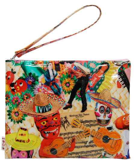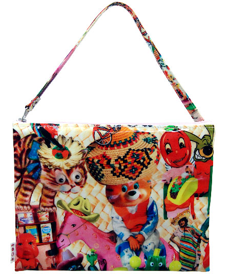 シーズンテーマに合わせたオリジナルプリントシリーズ。 グアダルーペ、ルチャリブレ、マリアッチなどのメキシコのカルチャーの切り抜きをベースに、メキシカンドールやサボテン、動物キャラクターをコラージュしたレトロ感のあるPOPでカラフルなプリント生地のポーチ