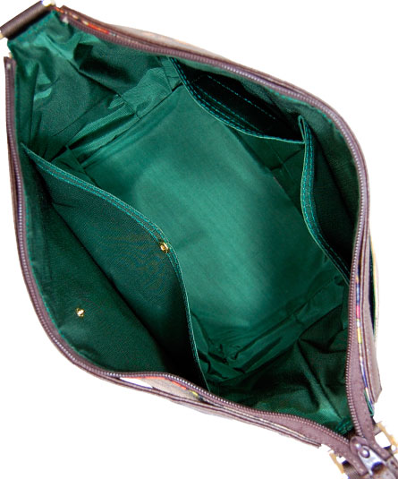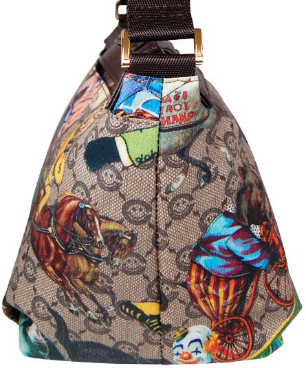 マチ幅が有りお弁当箱等がスッポリと収まるサイズのショルダー&提げ手バッグ。 シーズンテーマに合わせたオリジナルプリントシリーズ。 ベースのモノグラムパターンの上に、馬車や汽車に乗った動物や小人ときのこなど様々な可愛いらしいイラストが楽しく目を惹くバッグ。 手紐は、ブラウンの型押し革ですっきり纏められています。 プリント生地には、表面にビニールコーティングされていますので、多少の雨にも強いです。軽量で使い易いタイプです。 背ポケット付き。天ファスナー付き。内装の前後に二つポケット付き。プリントの柄域は、裁断の状況により画像とは異なりますので御了承下さい。