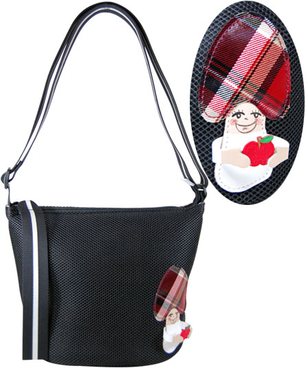 マチ幅が有りお弁当箱等がスッポリと収まるサイズのショルダーバッグ。 メッシュの本体に、きのこのモチーフがパッチワークされたキャッチ―でスポーティーなイメージのバッグ。 黒のバッグへ付いたきのこが持っているのは、りんご。そして、ベージュのバッグへ付いたきのこが持っているのは、栗になります。 また、ブルーのバッグに付いたきのこが持っているのは、乗り物になります。 モチーフの持つイメージは、秋の行楽シーズンにマイカーや観光バスに乗り、リンゴ狩りや栗拾いにお出かけするきのこ達です。 内装のチェック生地ときのこの頭部分は、お揃いの柄になっています。 きのこの顔部分は、手描きの為、一つ一つ異なりますので御了承下さい。 天ファスナー付き。内装の前後に二つポケット付き。