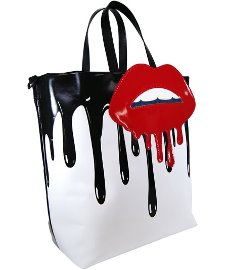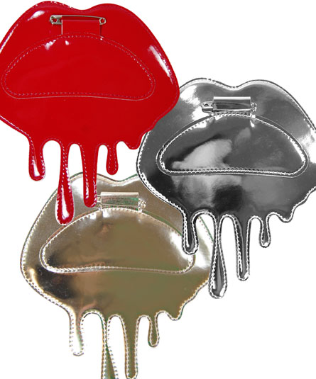 鮮やかなカラーの唇から涎が垂れたデザインが、ユニークでインパクトのあるバッグチャーム&ブローチ。 シンプルなバッグやお洋服へアクセントポイントとしてワンランク上のお洒落コーディネート! 背側にブローチ付き。