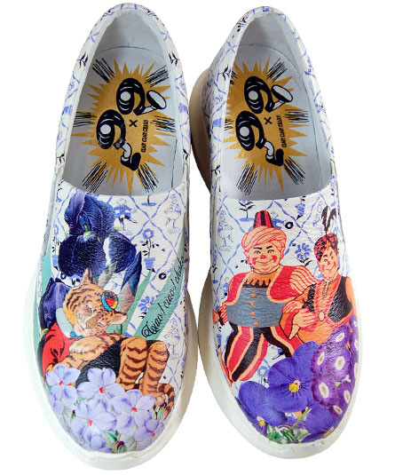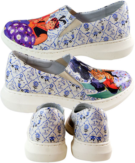 小さな子供が、履く靴の大人版のイメージ。 バッグシリーズで人気のコラージュプリントをスリッポンで表現しました。 左右でプリント柄が異なる遊び心のあるユニークなデザイン。 バッグとコーディネートをして、更にアップグレードした装いをお楽しみ下さい。 ソールに空気循環機能が付いているので、歩く度に空気が靴の中を循環し、歩行時の衝撃の緩和と湿気を軽減します。