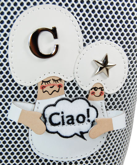 小ぶりのポシェットタイプ。背ポケット付き。天ファスナー付き 内装の前後に二つポケット付き。 メッシュの本体に、きのこのモチーフがパッチワークされたキャッチ―でスポーティーなイメージのバッグ。 黒のバッグへ付いたきのこが持っているのは、タコ。そして、ベージュのバッグへ付いたきのこが持っているのは、ポップコーンになります。 また、白のバッグへ付いたきのこが持っているのは、CIAO!になります。 モチーフの持つイメージは、フランスのサッカーチームとそのオーディエンスです。 きのこの顔部分は、手描きの為、一つ一つ異なりますので御了承下さい。