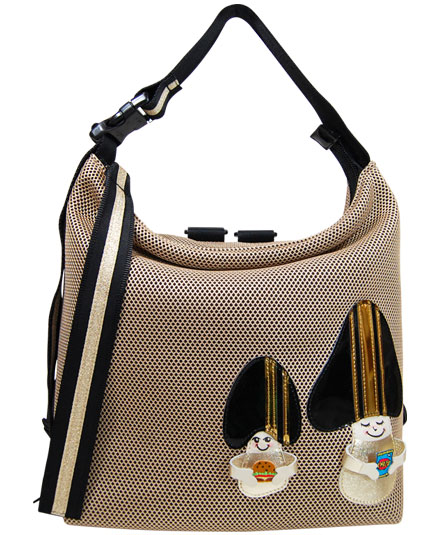 2WAY、リュック&セミショルダー。背ポケット付き。天ファスナー付き。内装の前後に二つポケット付き。 メッシュの本体に、きのこのモチーフが二体パッチワークされたキャッチ―でスポーティーなイメージのバッグ。 黒のバッグへ付いたきのこが持っているのは、パンダとサッカーボール。そして、ベージュのバッグへ付いたきのこが持っているのは、ハンバーガーとスナック菓子になります。 また、白のバッグへ付いたきのこが持っているのは、おにぎりと黒猫になります。 モチーフの持つイメージは、フランスのサッカーチームとそのオーディエンスです。 きのこの顔部分は、手描きの為、一つ一つ異なりますので御了承下さい。