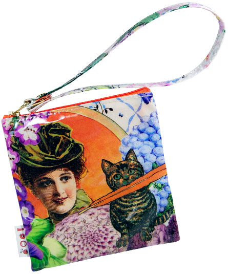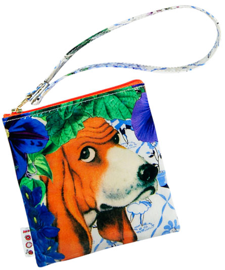 カードややタバコ入れ、お化粧ポーチとして便利な小さめなポーチ。手紐にホック付き。 シーズンテーマに合わせたオリジナルプリント生地、様々なブルーの花々の中に見え隠れするリラックスした様子の動物や人物のイラストがボタニカルなイメージ。 プリント生地には、表面にビニールコーティングされていますので、多少の雨にも強いです。軽量で使い易いタイプです。