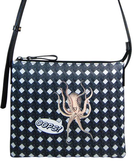 茶色には、「OOPS!」の吹き出しと豹のボタニカルイラストが黒には、蛸のイラストがポイントとして目を惹きます。