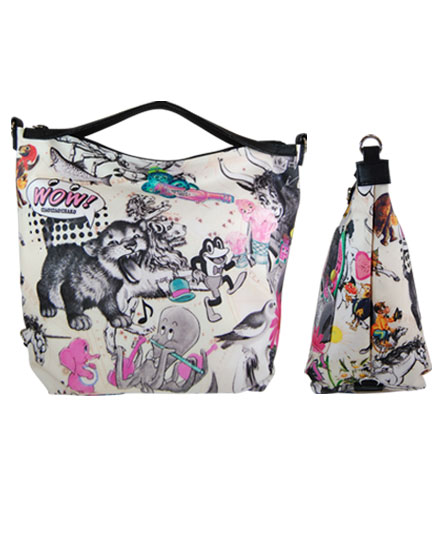 今シーズンのプリント柄は、モノトーンの様々な星座のイラストをベースに、子供や動物のキャラクターをコラージュしたプリントです。