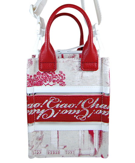 背ポケット付き。天ファスナー付き。手紐ショルダー(幅30mm幅)取り外し可能。