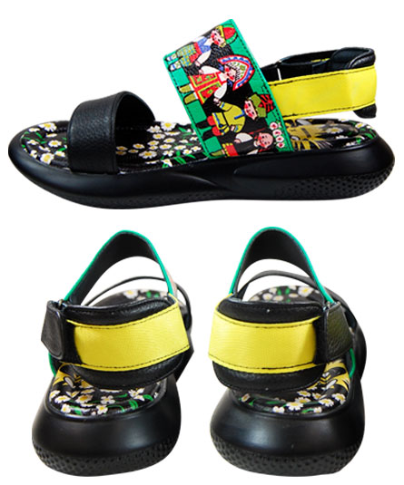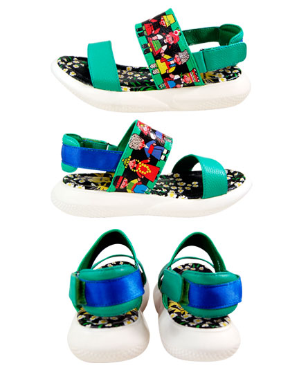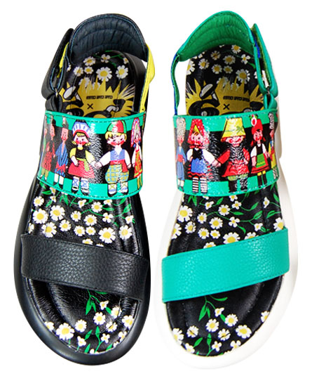 甲のベルト部分へ、カラフルな民族衣装を纏った子供達が手を繋いでいる可愛らしいイラストがプリントされています。