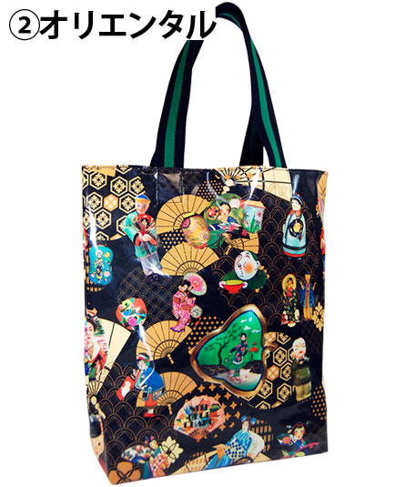 歴代のシーズンテーマに合わせたプリント生地を使ったカラフルなショッピングトート。