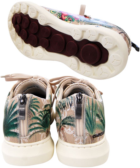 左右足の内外でプリント柄が異なる遊び心のあるユニークなデザイン。