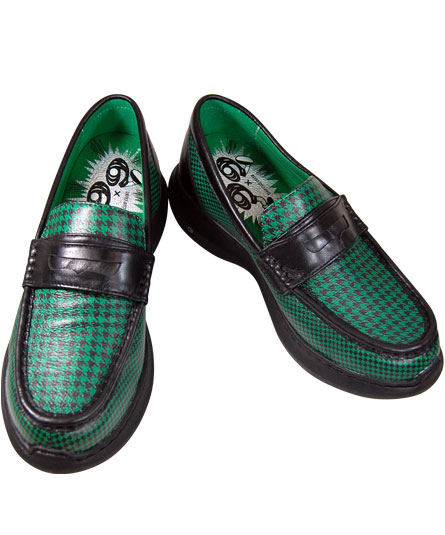 アッパー部分には千鳥格子のプリント革を使い、サイド部分には市松模様のプリント革を組み合わせた二種類の模様の違いが洒落たデザインです。