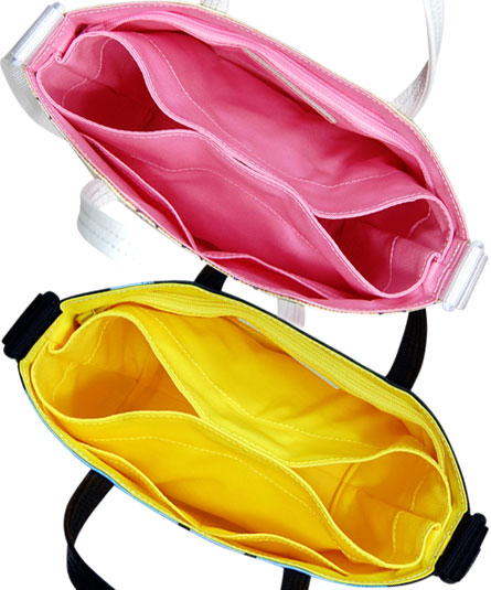 内装のピンクとレモンイエローのカラーが、本体プリントとのアクセントととして効いています。