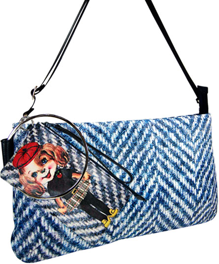 本体バッグは、ポリエステル生地へリアルなファーやツイードの柄をプリントしています。
