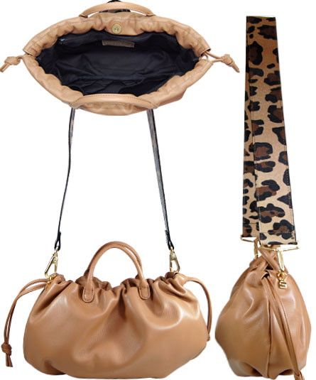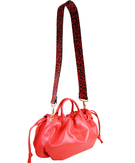 ショルダー紐は、各色異なった豹のプリントした革を合わせていて、全体的にはパンチの効いた印象に仕上がっています。