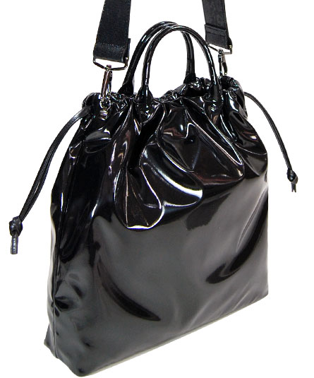 縦長の巾着型提げ手兼ショルダー。