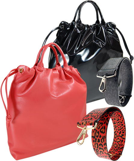 ショルダー紐は、各色異なった豹のプリントした革を合わせていて、全体的にはパンチの効いた印象に仕上がっています。