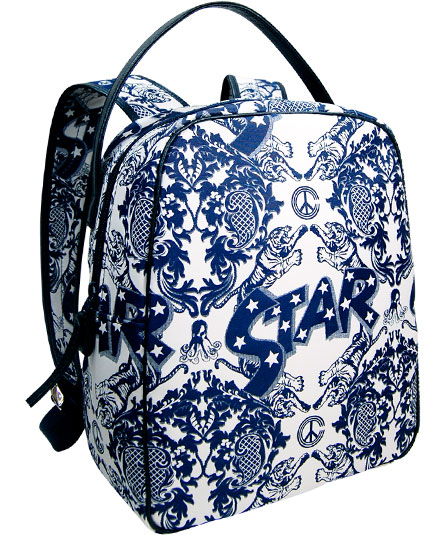 ダマスク織りのベース模様と"STAR"のロゴが大きく織り込まれたインパクトのあるコミカルなジャガード生地を使用したバッグシリーズ。