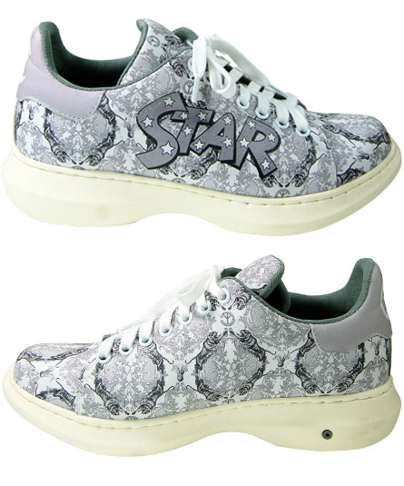 クラシカルなダマスク織りのベース模様と"STAR"のロゴのパンチの効いた図柄が絶妙にマッチしたお洒落な雰囲気のデザインです。
